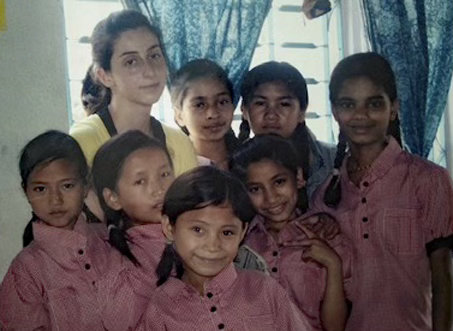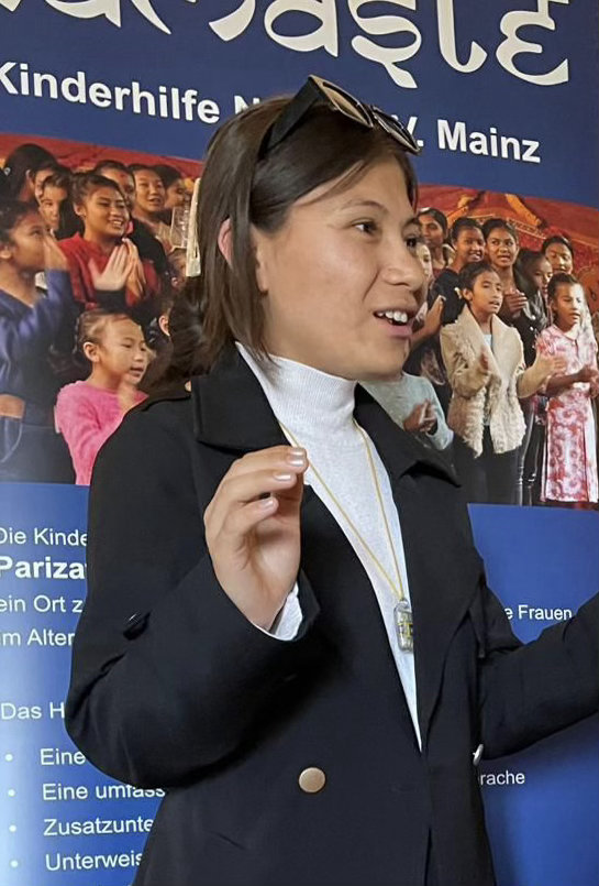 Sangita Lama heute und im Parizat Nestling Home (rechtes Bild, vorne Mitte). Sie lebt z.Zt. als Au Pair in Deutschland und bewirbt sich um eine Ausbildungsstelle als Krankenschwester.